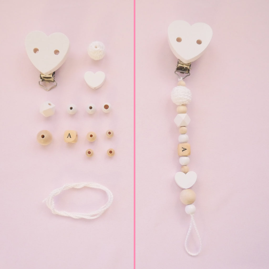 Mal wieder eine schlichtere Schnullerkette, was die Farben angeht. 😊 Dafür besteht sie aus Holzperlen in verschiedenen Formen und Größen. 😉